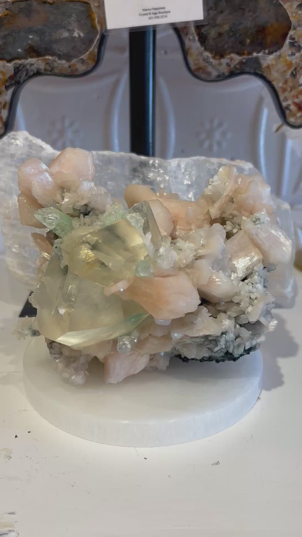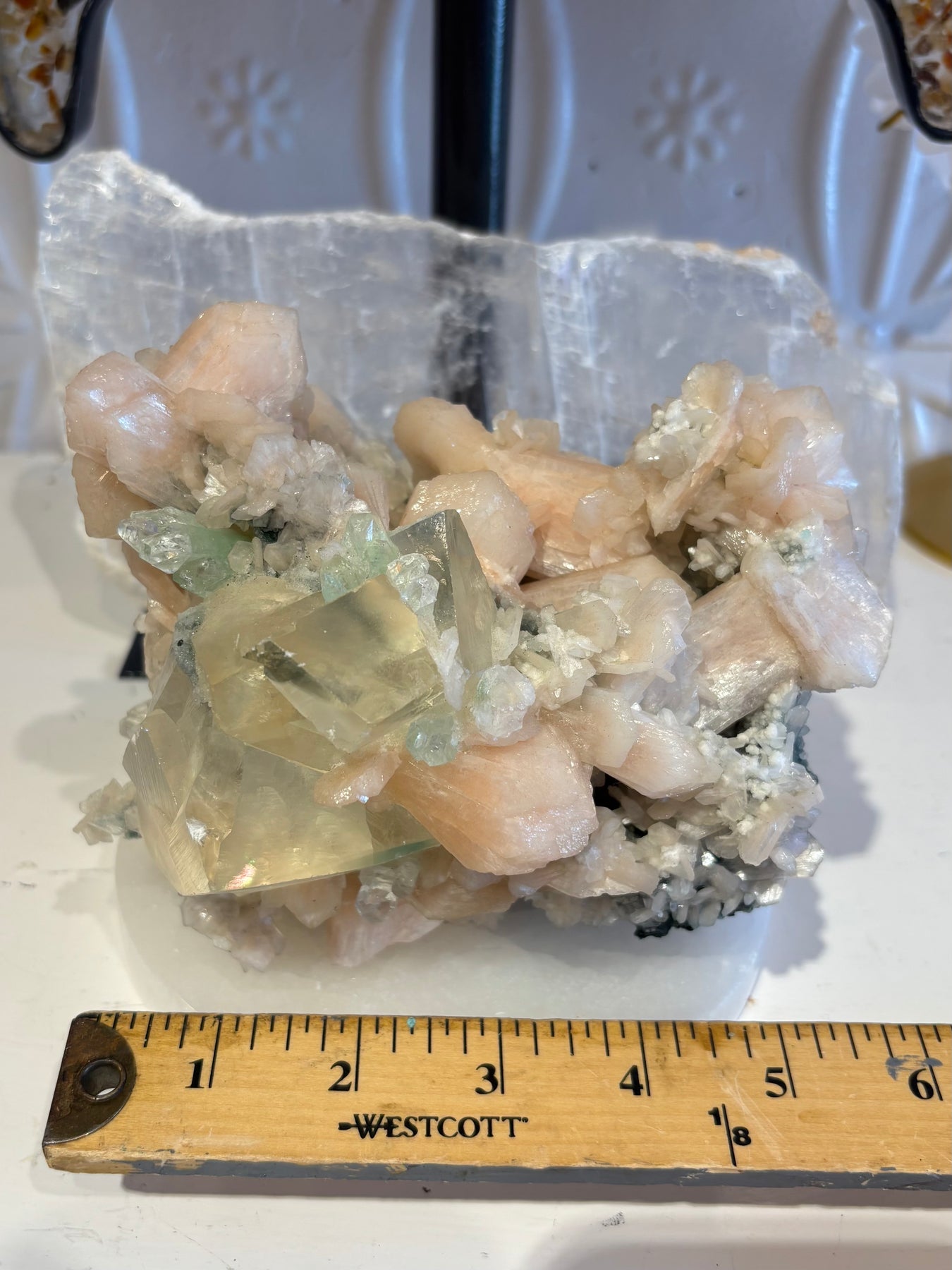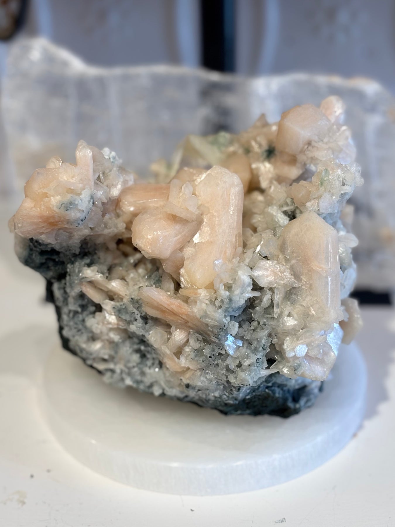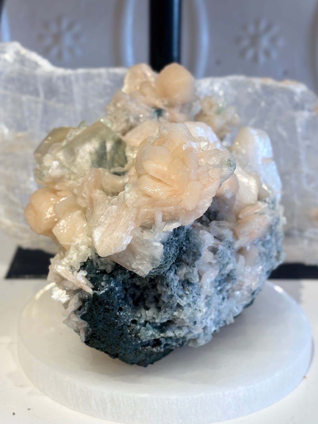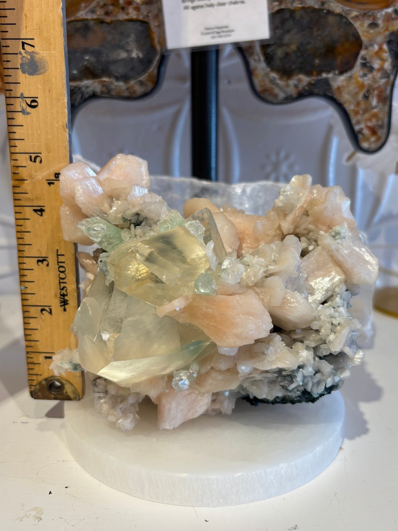 Large Apophyllite, Green Apophyllite and Stillbite Cluster. Approximately 5 inches high x 6 inches wide x 5 inches deep.