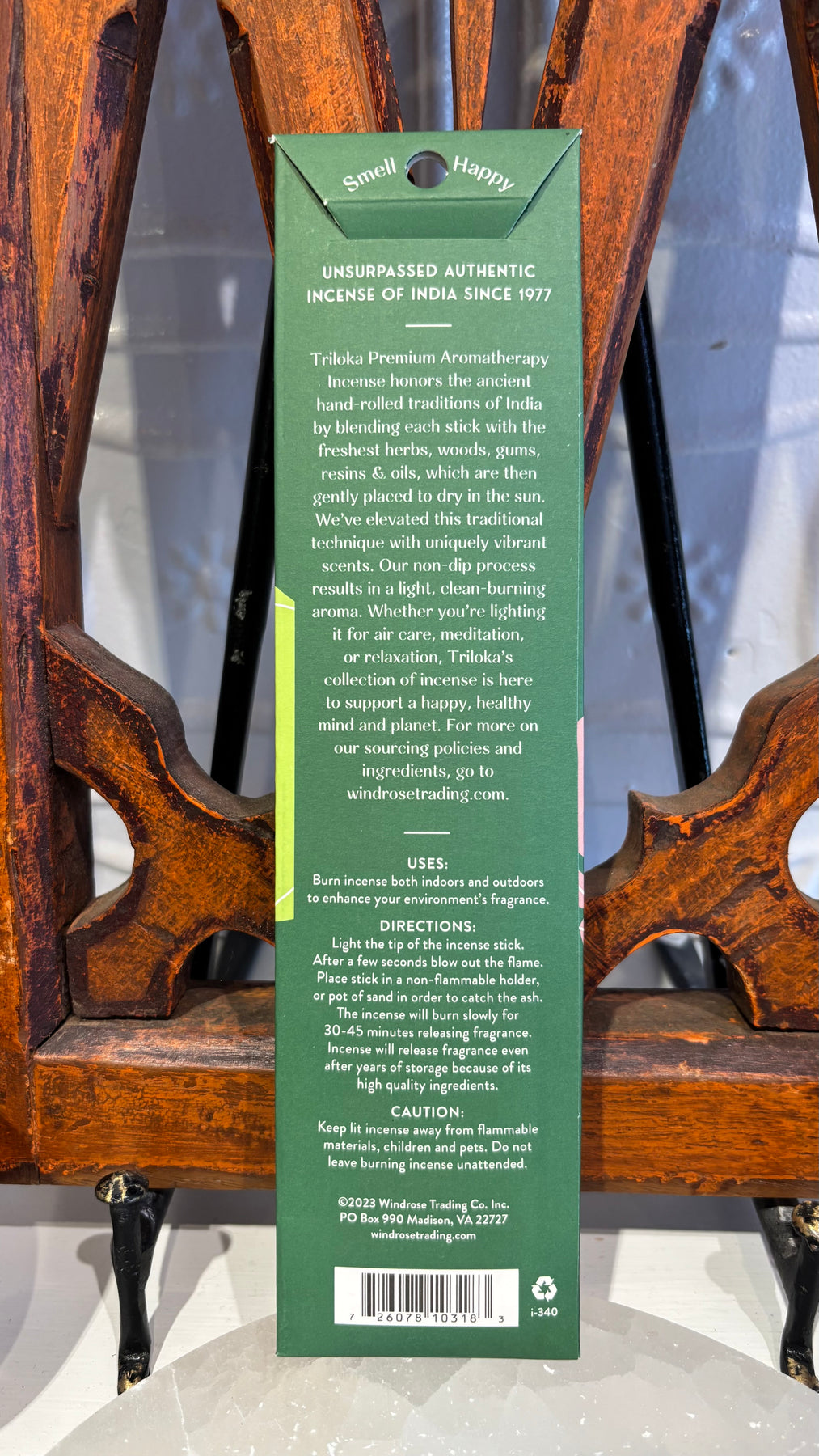 Triloka Aromatherapy Patchouli Rose Incense. 10 sticks included in pack. Made in India.