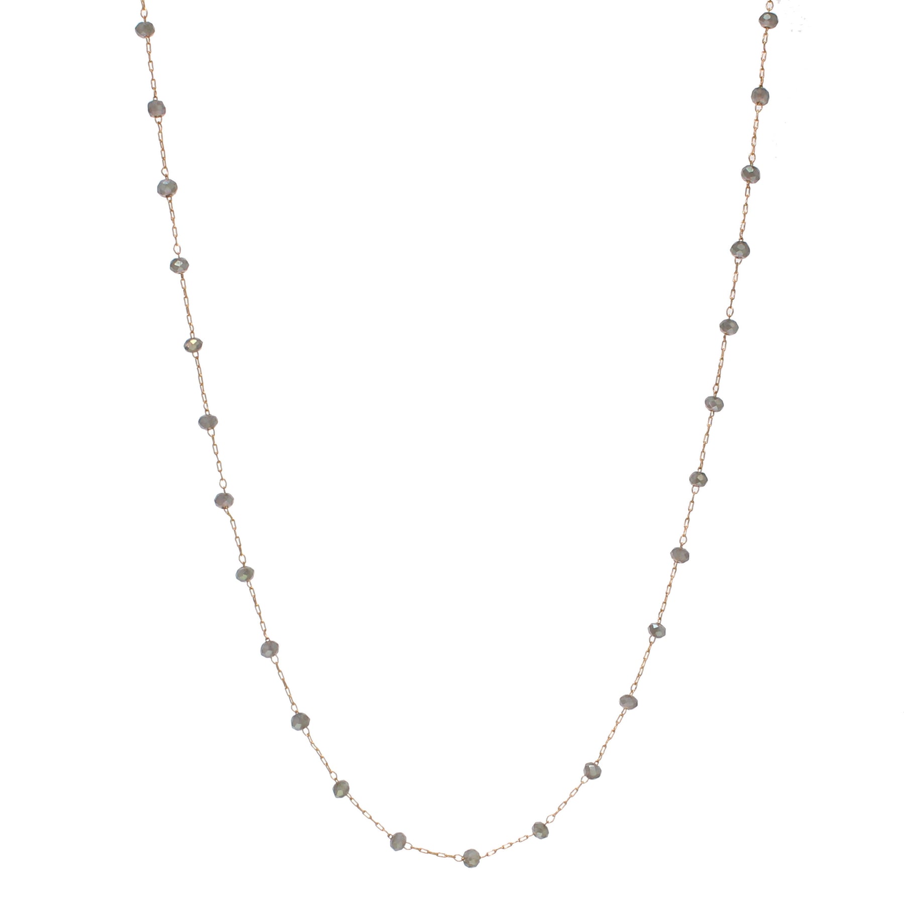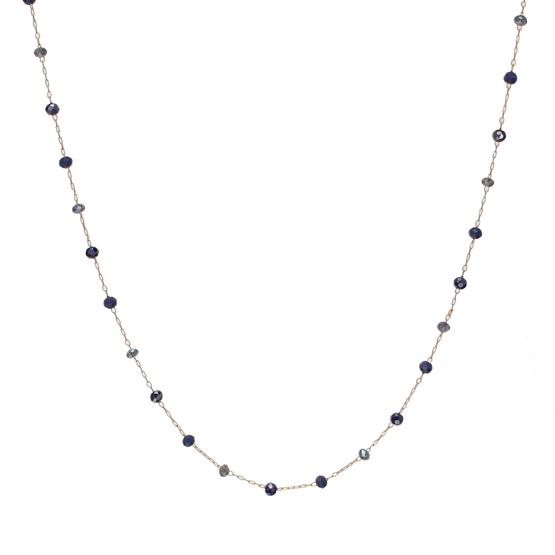 Fine Chain Choker Necklace with Stationed Crystal Beads, 13" w/ 3" extension