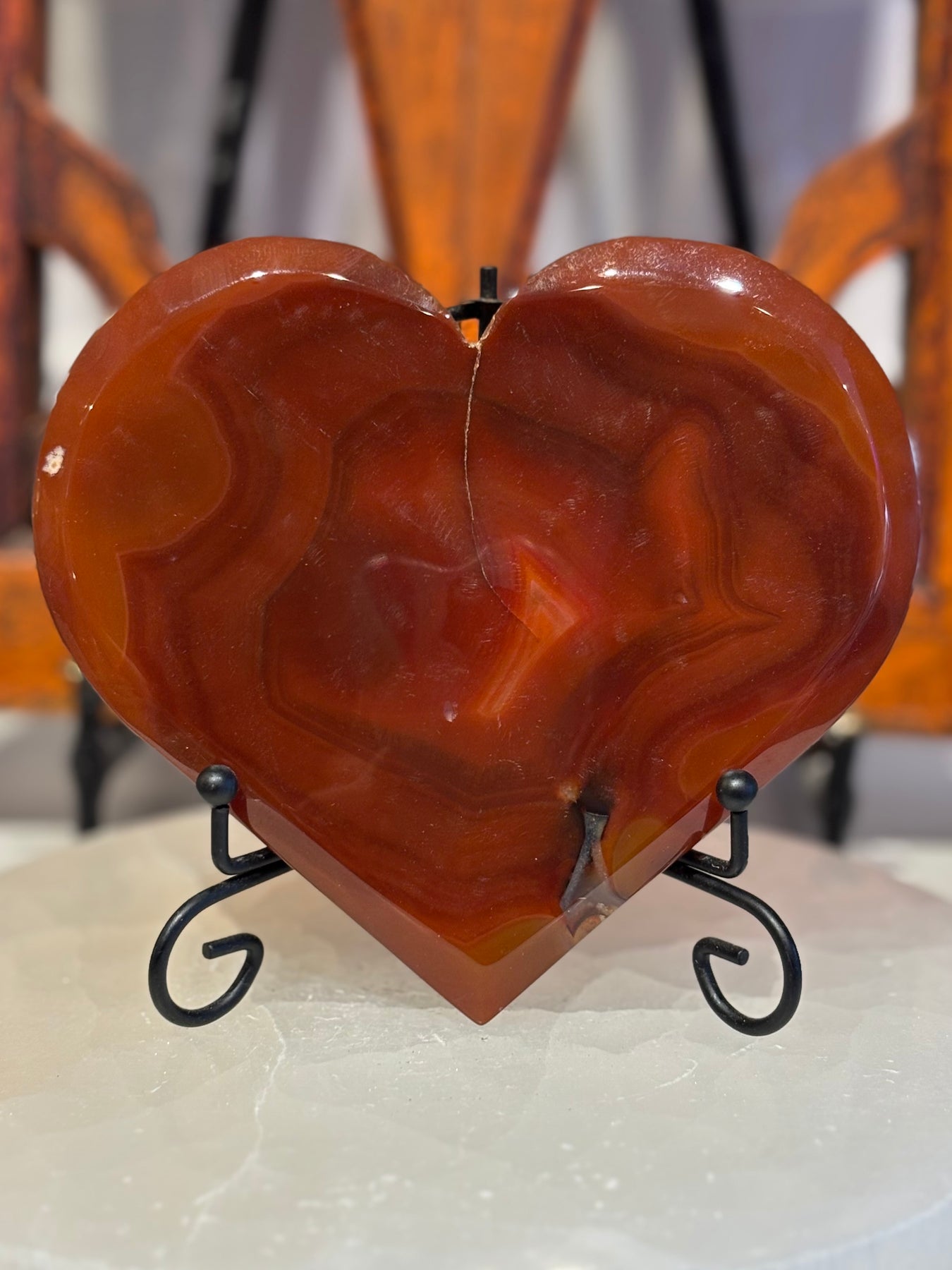 Carnelian Heart. Approximately 4 1/4 inches high x 5 inches wide x 3/8 inches deep.