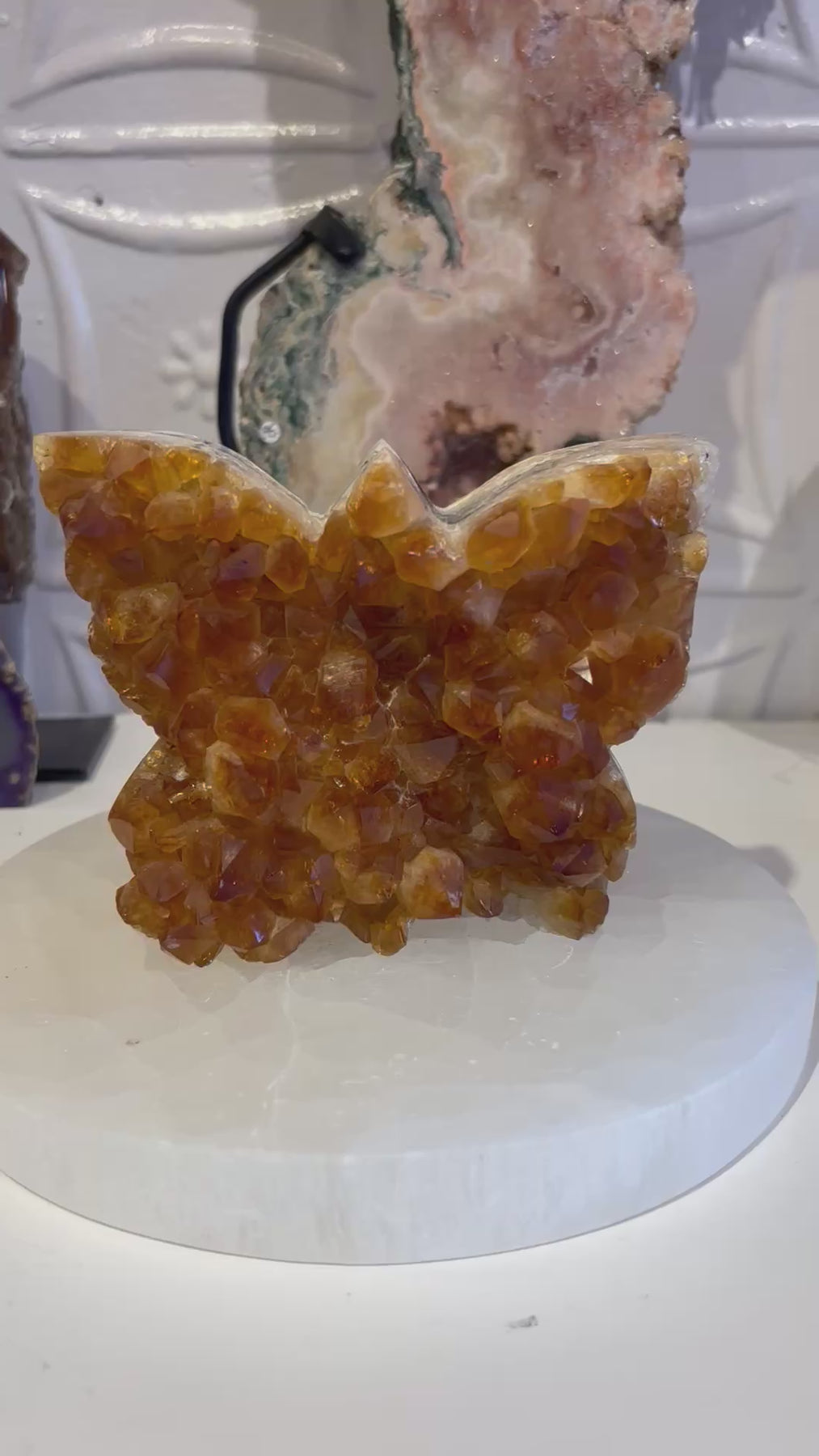 Citrine Butterfly Figurine. Approximately 4 1/2 inches high x 5 1/4 inches wide x 2 1/4 inches deep.