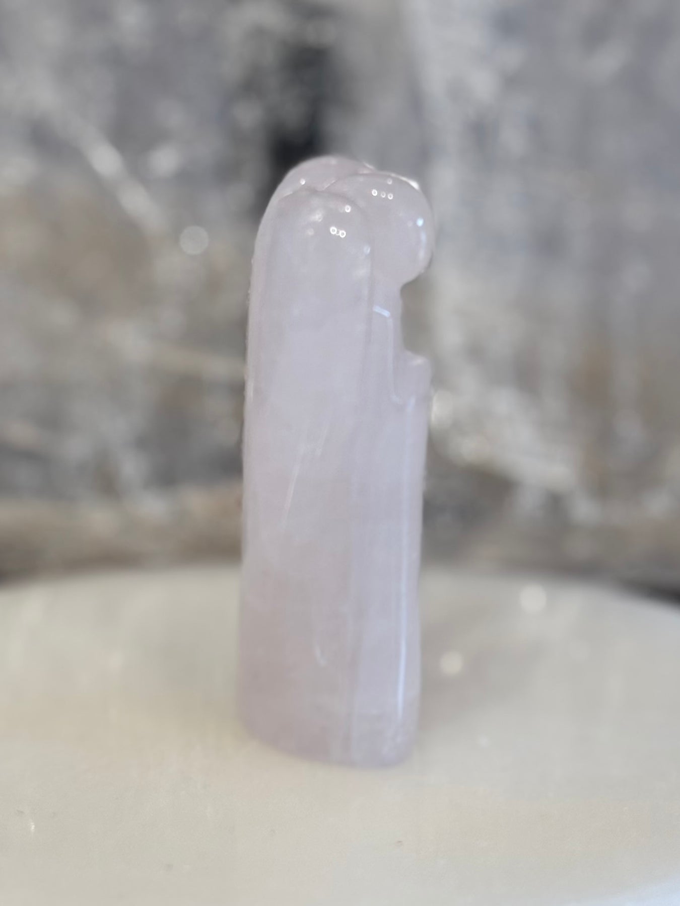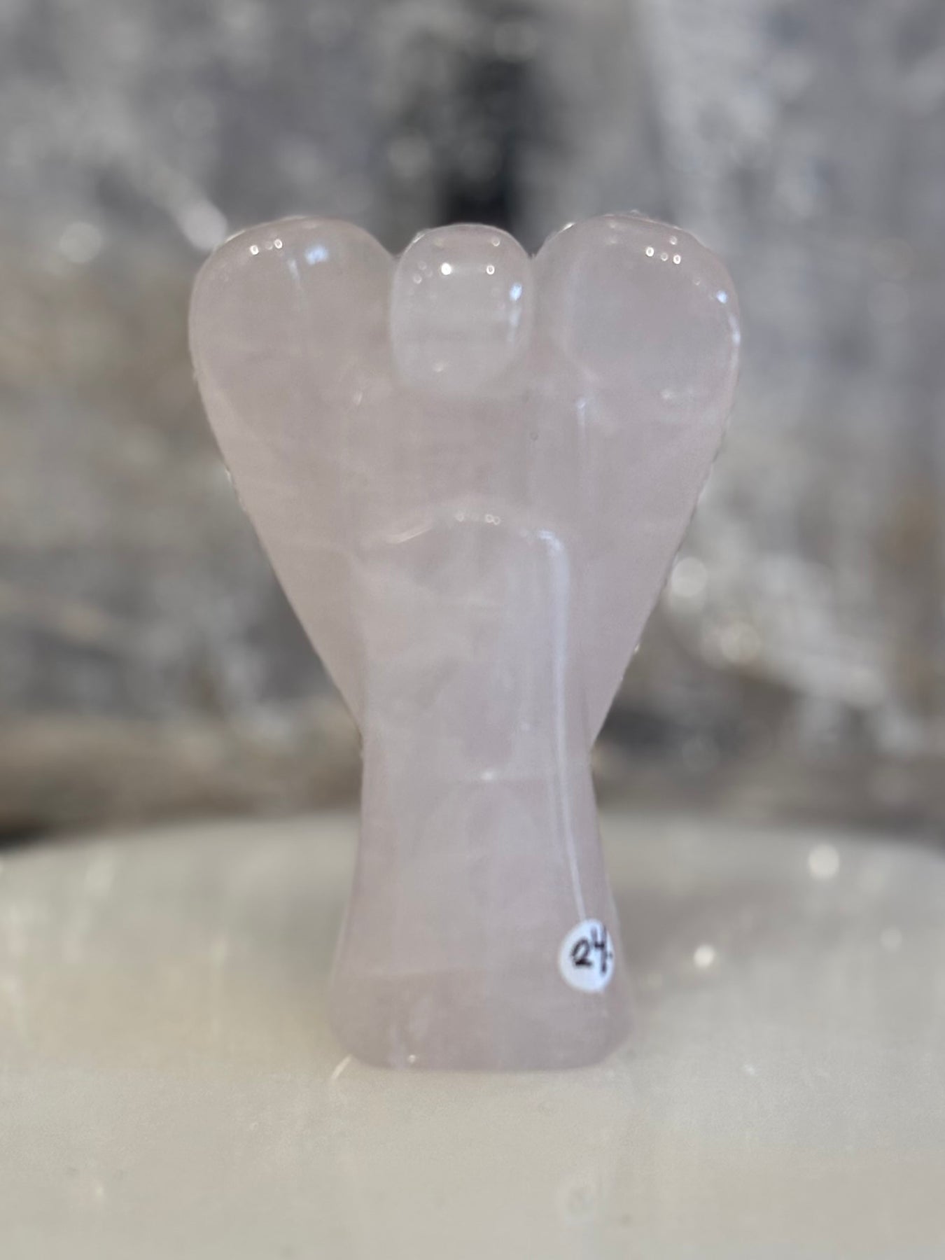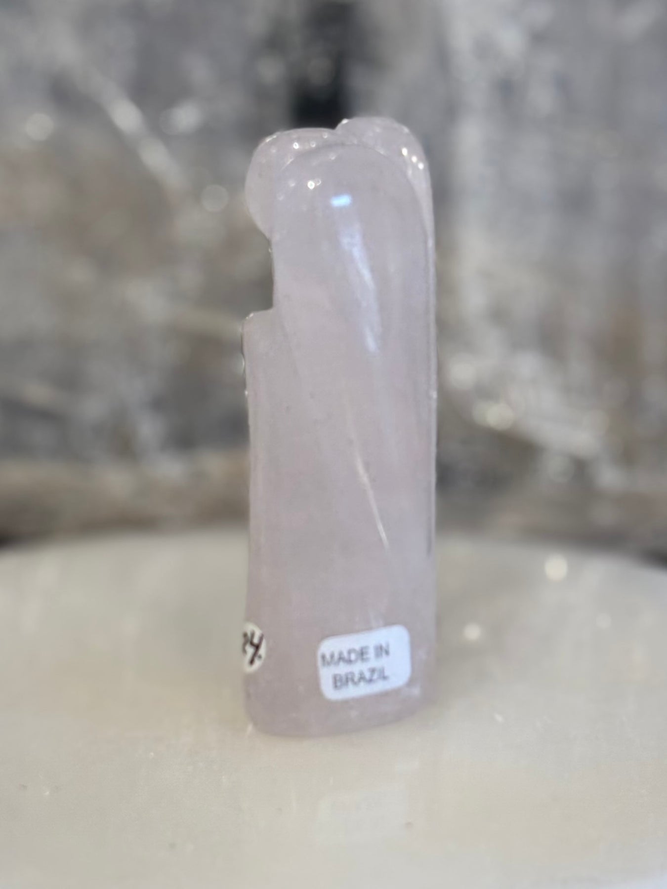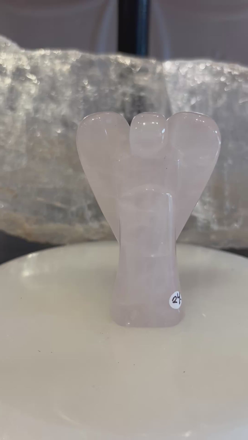 Rose Quartz Angel Figurine. Approximately 3 inches high x 1 7/8 inches wide x 1 inch deep. Made in Brazil.